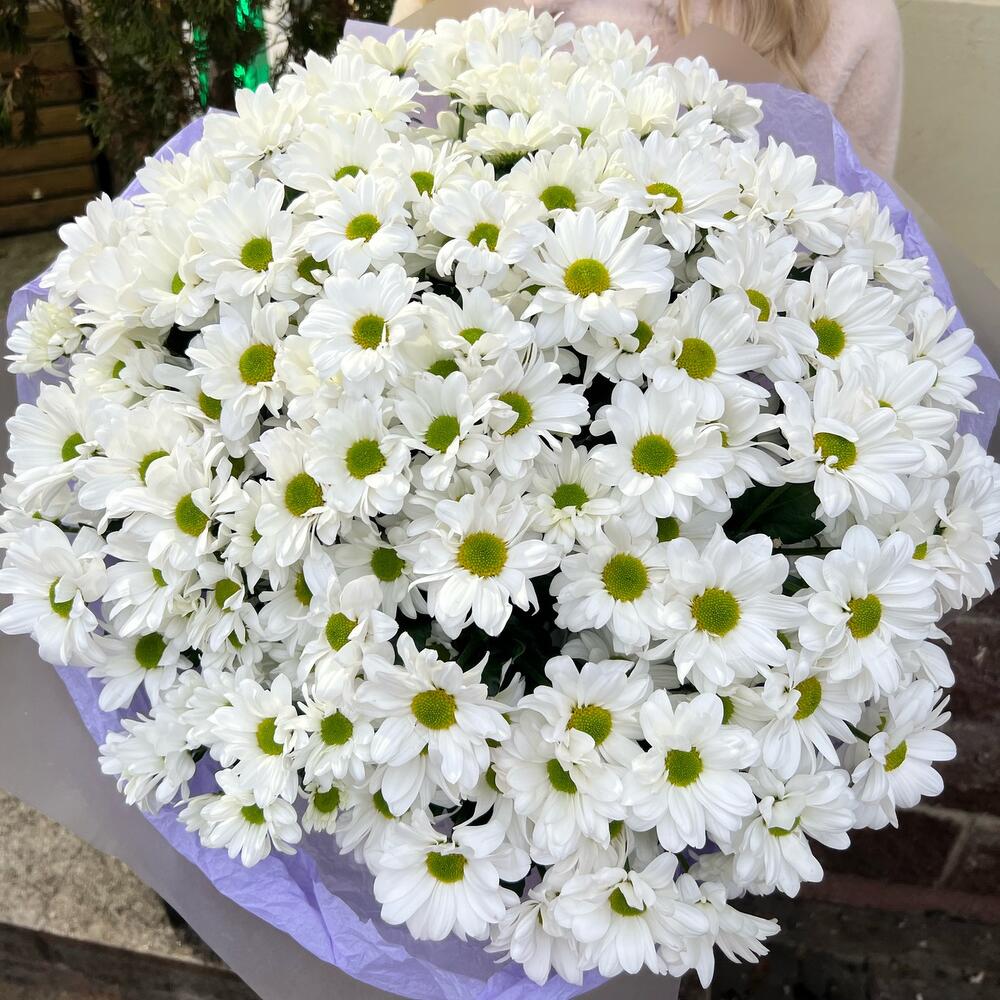 Популярная, очень напоминающая ромашку хризантема. Белоснежные лепестки и зелёная серединка; диаметр цветка 5-7 см., длина стебля до 65 см. Молодой сорт, выведен в 2004 году.