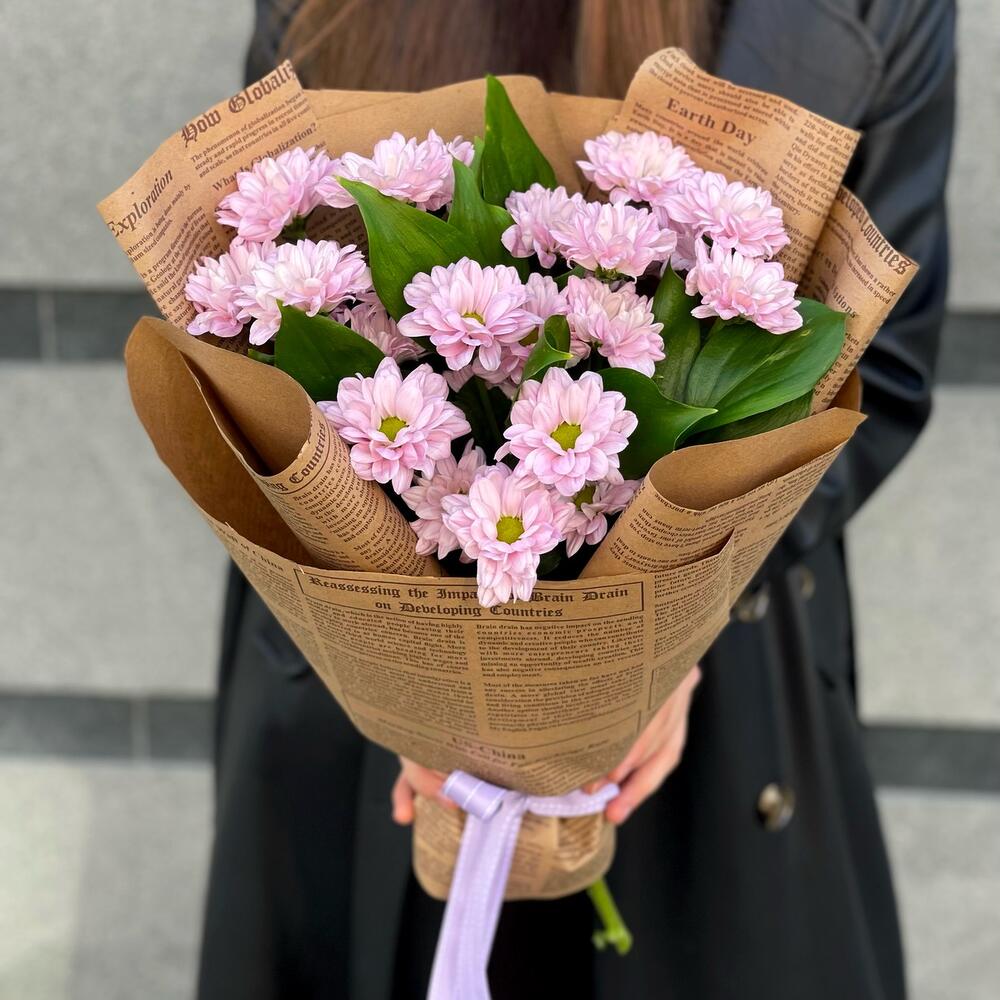 ХРИЗАНТЕМА КУСТОВАЯ РОМАШКОВАЯ С РУСКУСОМ В КРАФТЕ в Юхнове